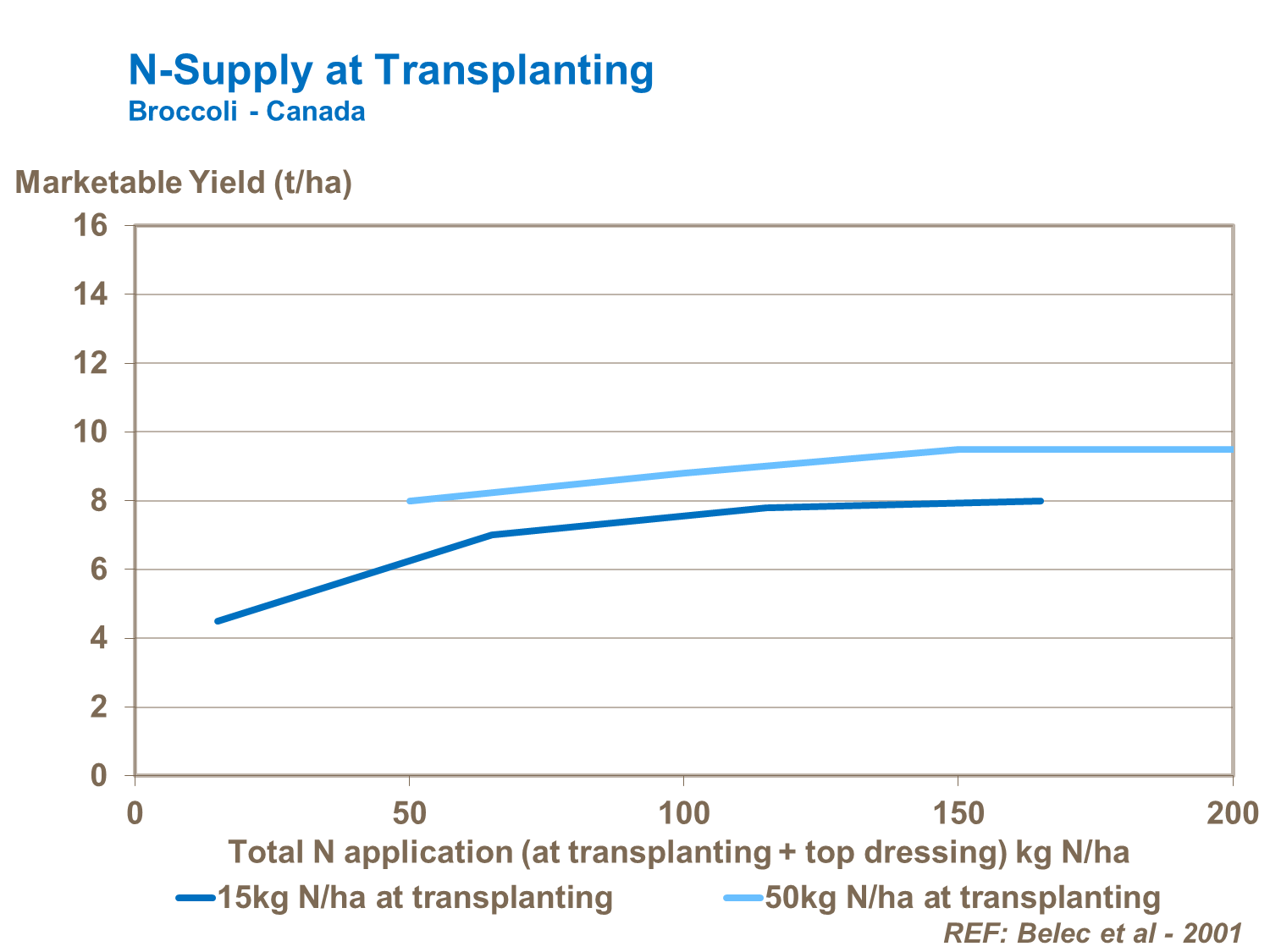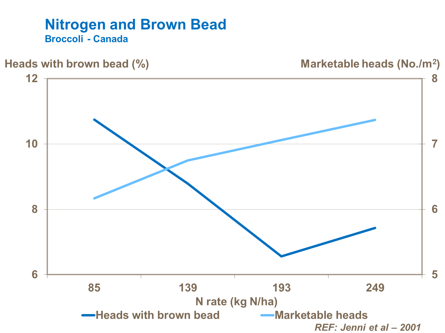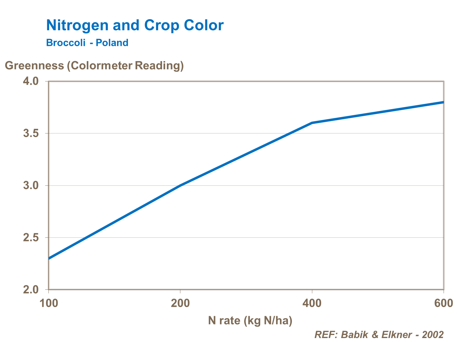 Correct nitrogen nutrition also improves crop color and reduces the incidence of brown head in broccoli, which improves marketability.